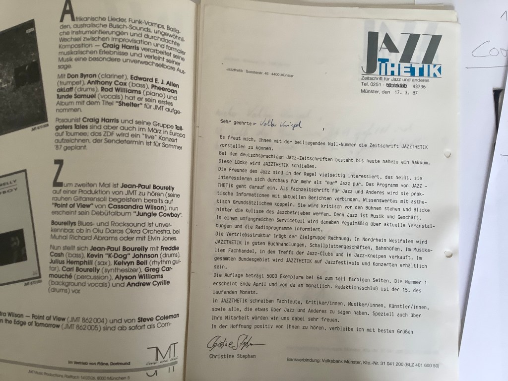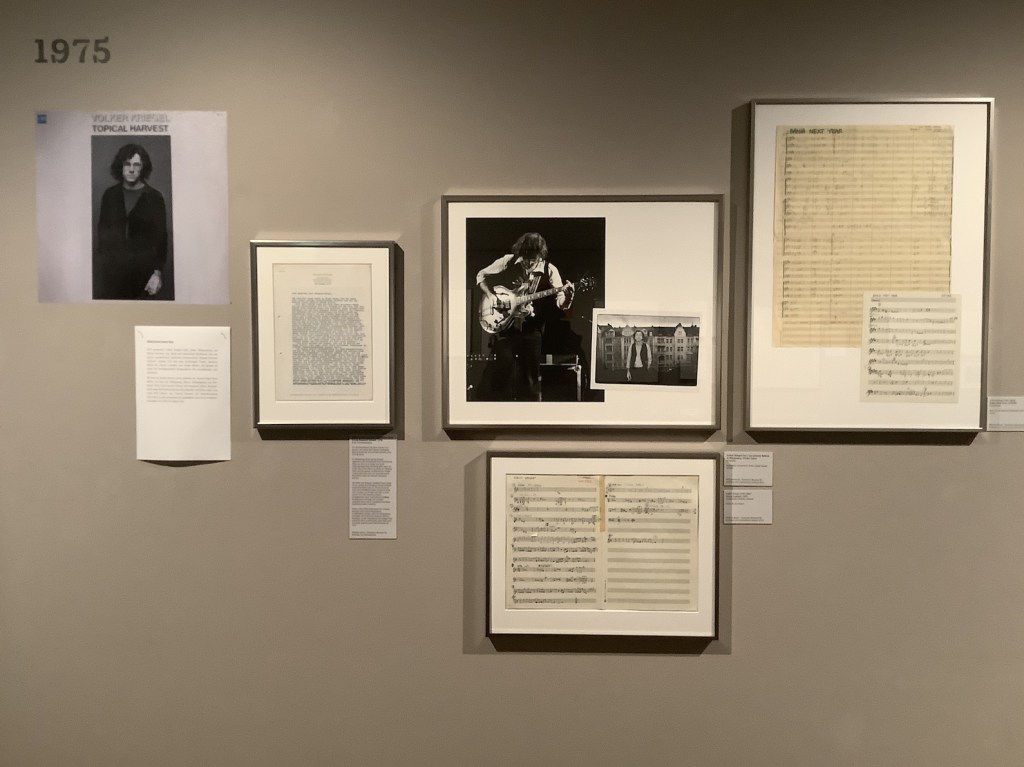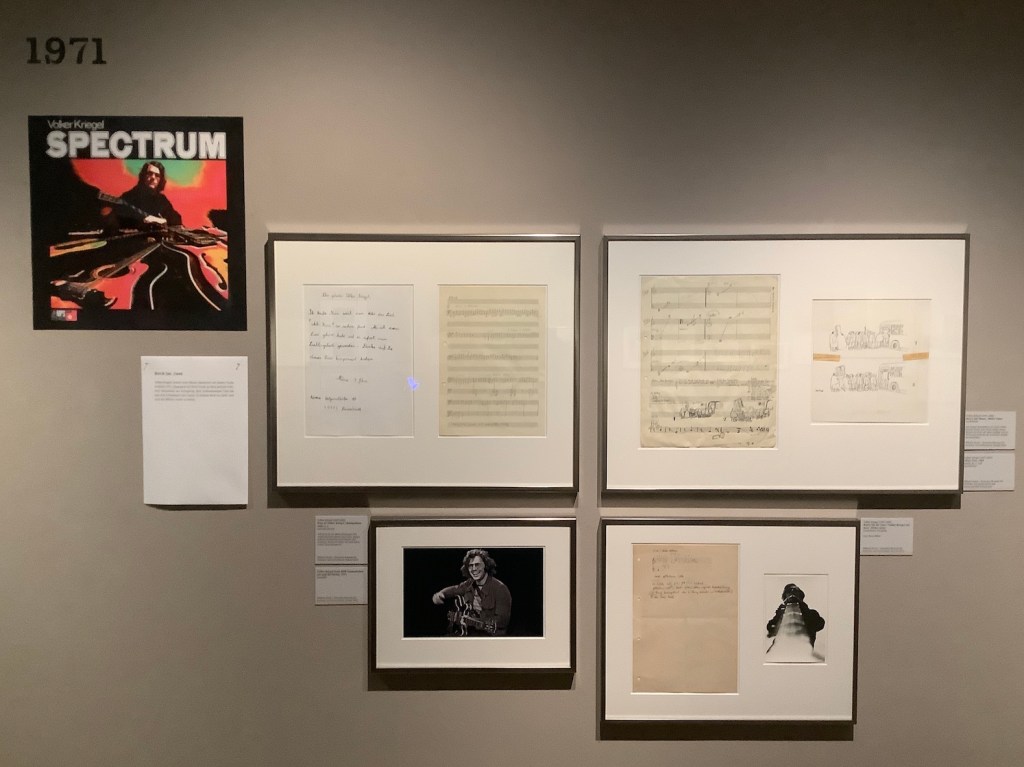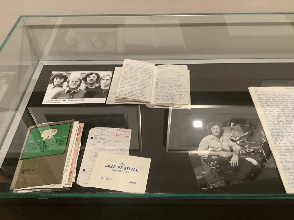 Meine Aufgabe bestand darin, circa zehn Umzugskartons mit Unterlagen, Fotos, Briefen etc. aus dem Nachlass des Gitarristen zu sichten, um damit eine Etage der Ausstellung zu gestalten, die sich primär mit dem Musiker Volker Kriegel befassen sollte.