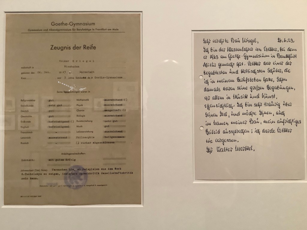 Hier noch ein paar Impressionen von der Ausstellung. Ich hatte eine ganze Etage im Museum zur Verfügung, die ich mit den unzähligen Dokumenten, Fotos und anderen Materialien bestücken sollte. Für mich war diese Aufgabe eine Premiere – und als Volker-Kriegel-Fan seit den 1970ern ein großes Geschenk. Eine Herausforderung war die Auswahl und die Beschränkung auf relativ wenige der vorhandenen Exponate.